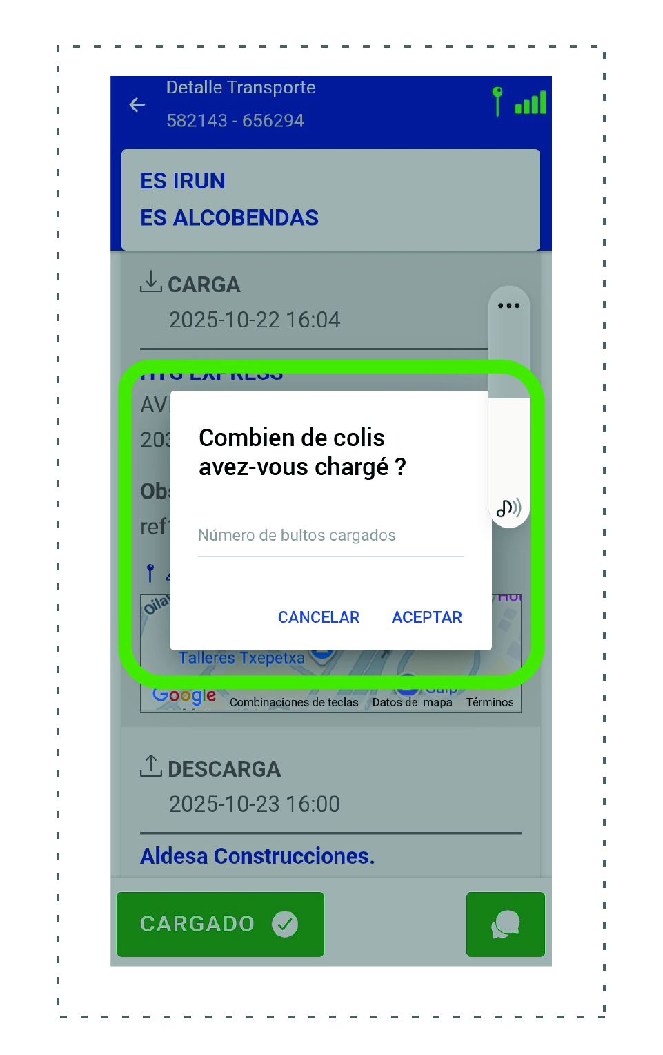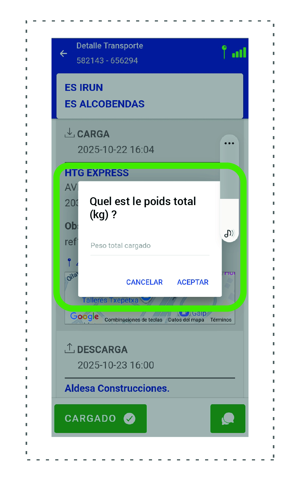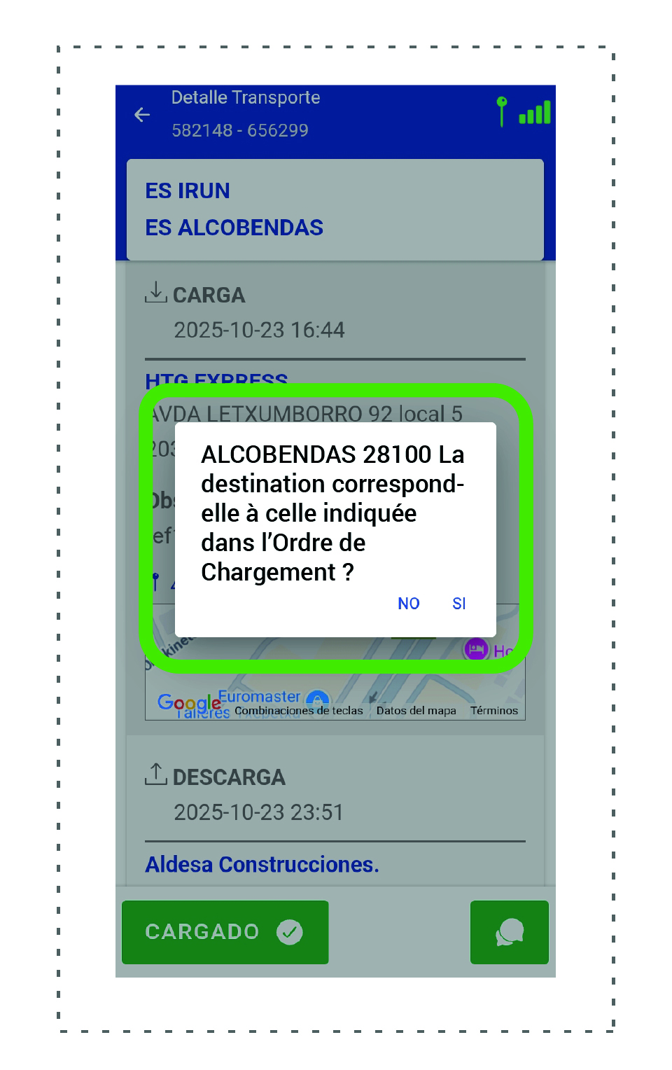 Une fois le véhicule chargé, il est obligatoire de vérifier qu’il n’y a pas de divergence avec l’ordre de transport et de recevoir l’accord de HTG Express. Vous pouvez alors quitter le point de chargement.